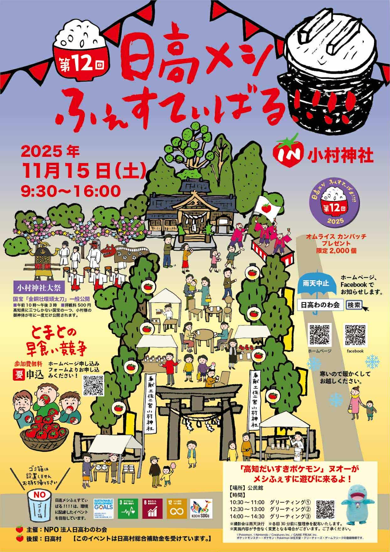今年も 開催します。 令和7年11月15日(土)9:30~16:00 次の土曜日は、日高村にお越しください。 小村神社の秋の大祭も同日、国宝も見ることが出きる1年に1度の特別の日です。 JRでおこしい…
